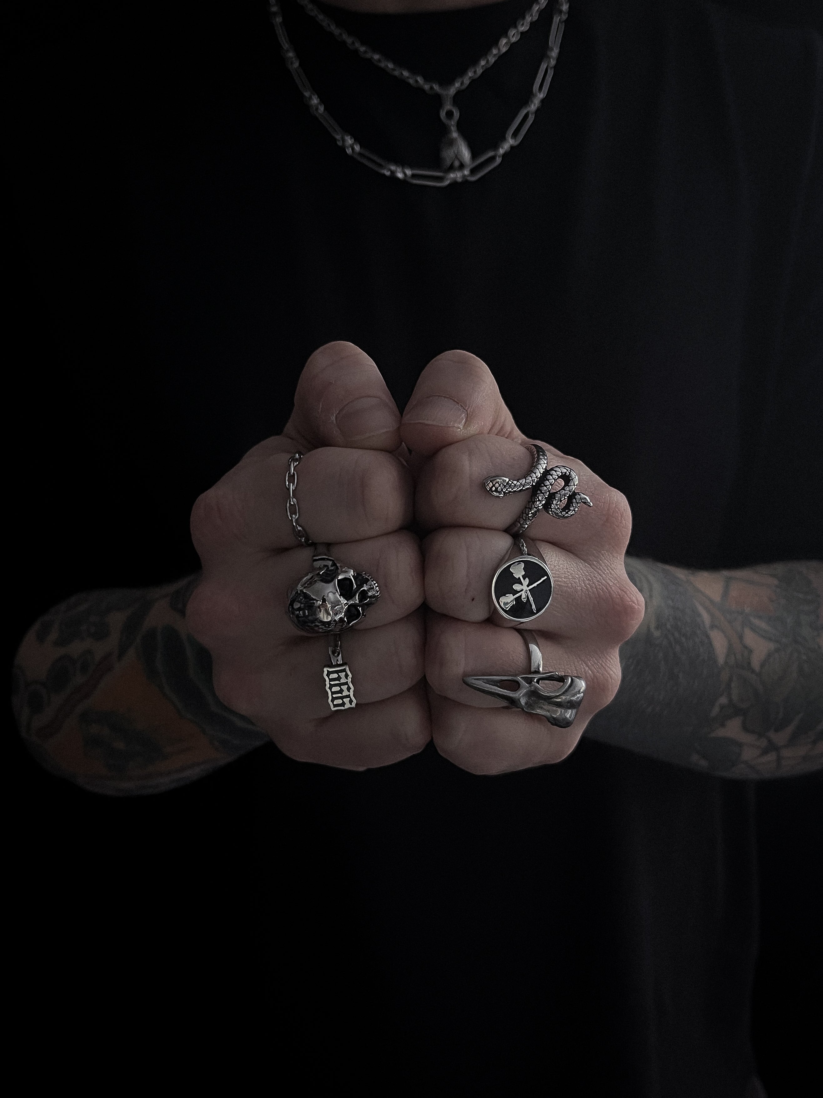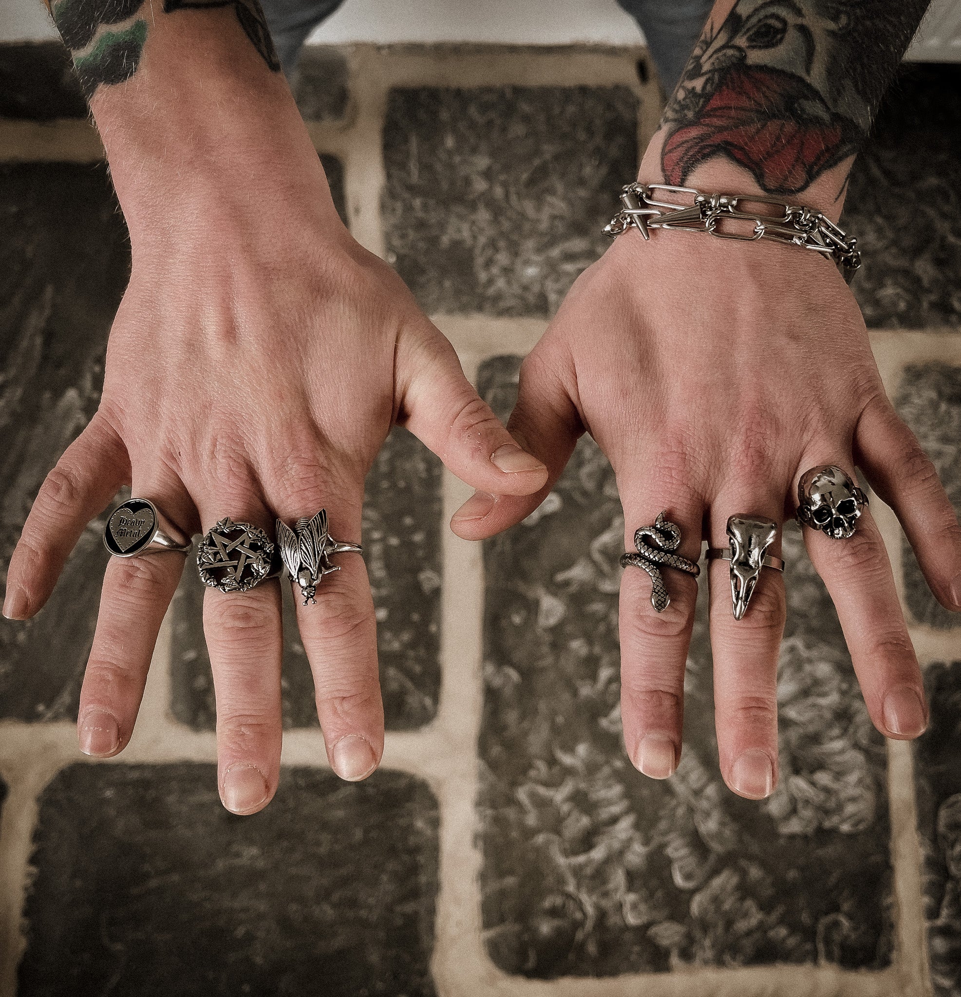 Starting off with an everlasting piece - Skull Rings. Skull Jewellery has been traced all the way back to the 14th Century, and to this day is still a sought-after item. It has always represented things that aren’t the norm and has almost become a symbol for those who stand apart and embrace anything dark. Our Hel Skull Ring has become one of our bestselling pieces, it makes a statement, while also telling a story with its Anatomical realness and the tale behind the name - Hel being inspired by the Norse Goddess of death. If Human skulls don’t float your boat, Animal skulls are another staple to try - like our Raven.