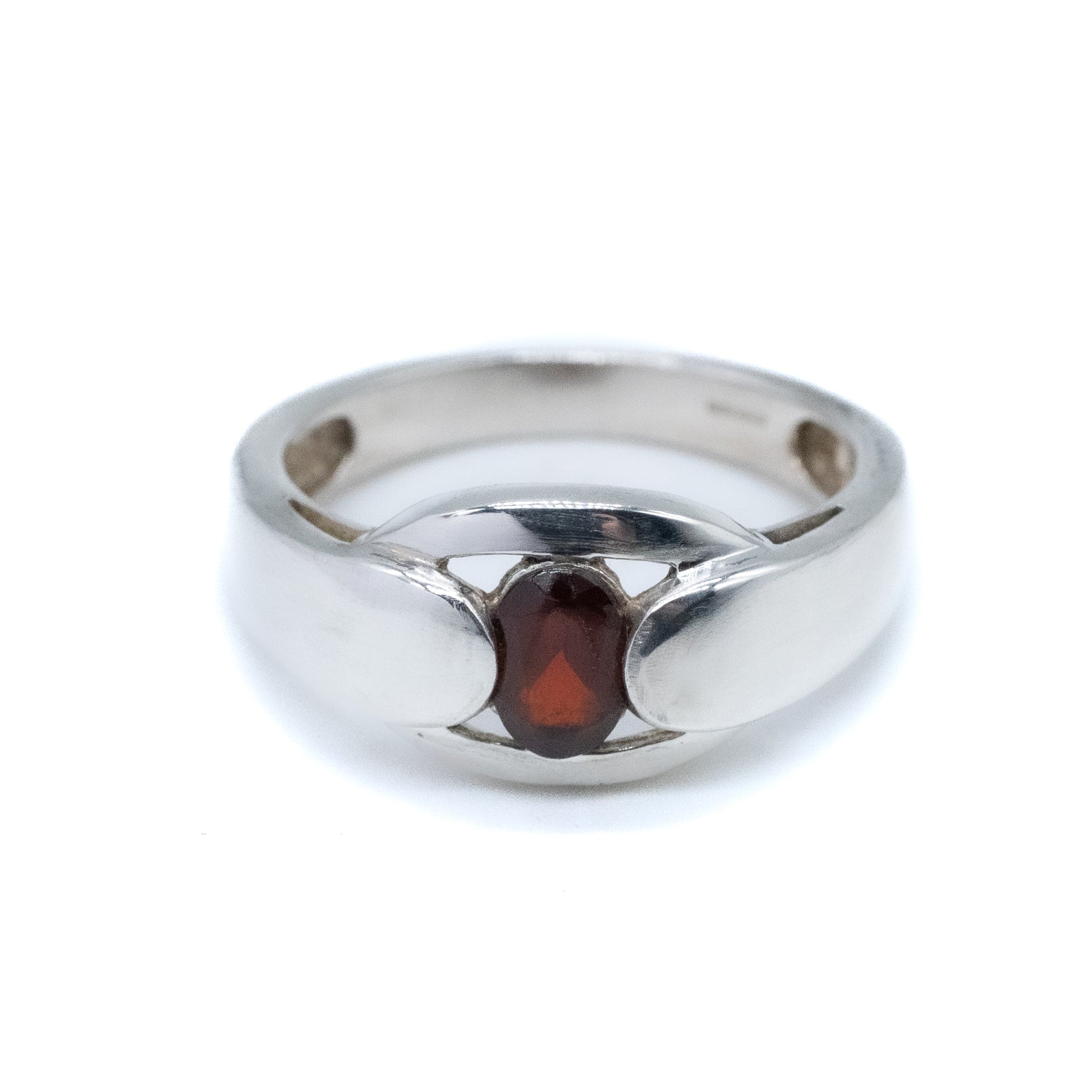 Sterling Silver Garnet Ring - Size UK O / US 7
