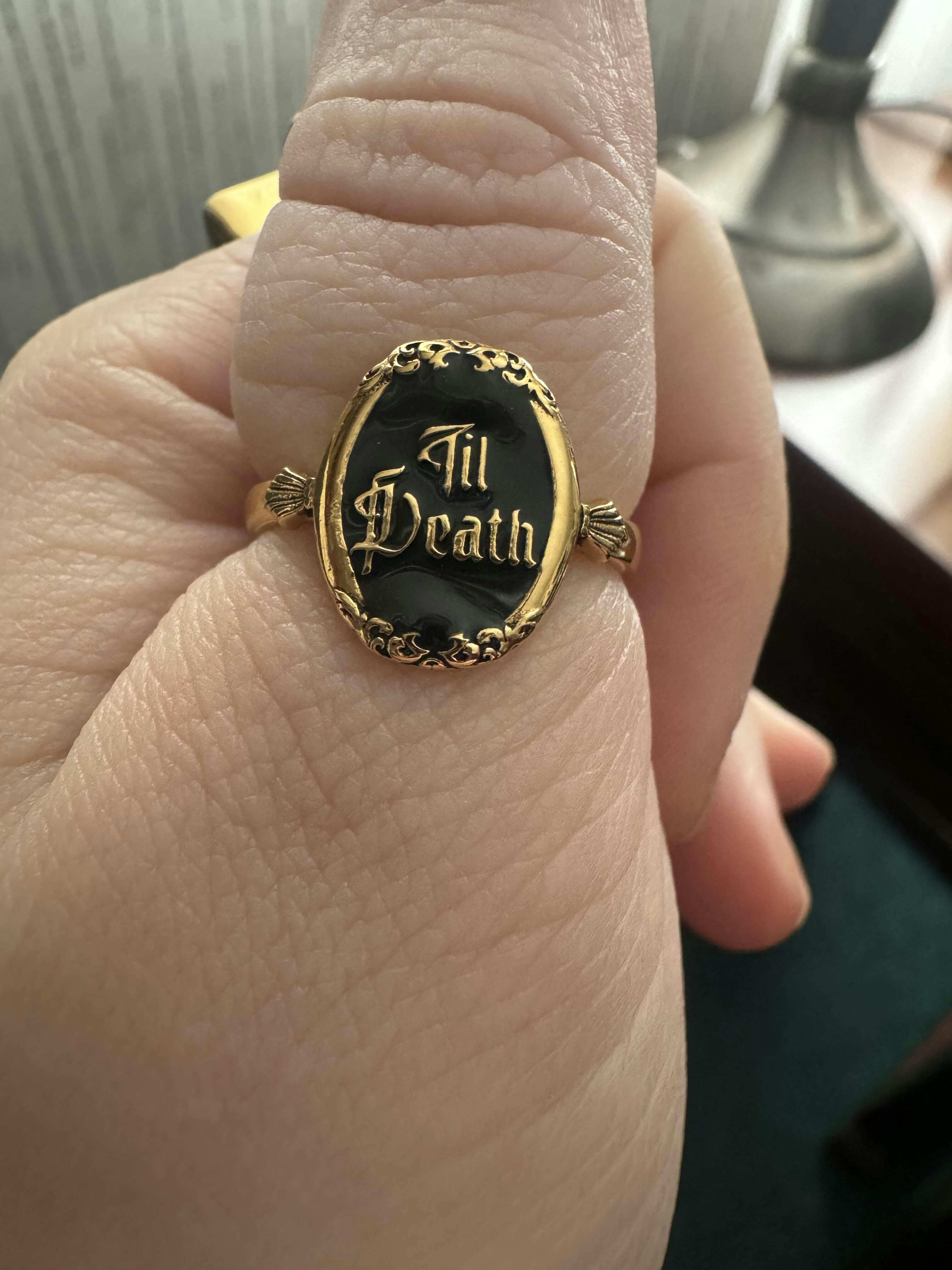 The Til Death Ring is perfect for those who believe love is a grave affair.  Whether you're wooing your goth soulmate or scaring away normies, this ring states: "Together forever—and maybe a little longer."