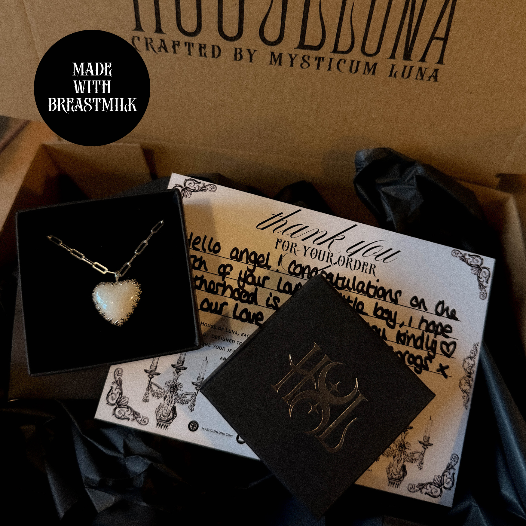 Mother of Flames Gothic Heart Breastmilk Necklace