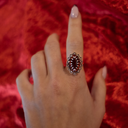Sterling Silver Garnet Cocktail Ring - Size UK O / US 7