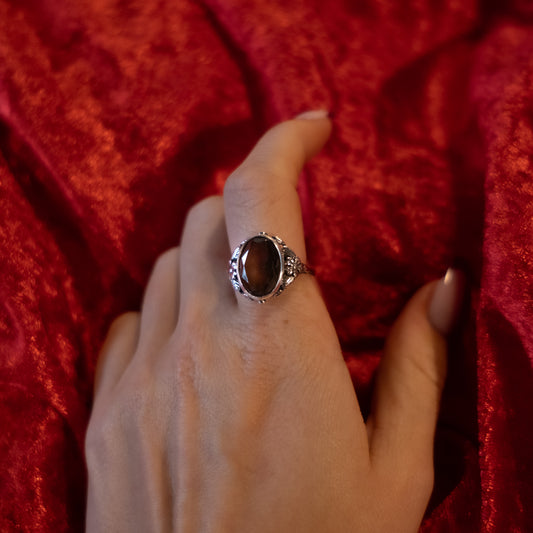 Sterling Silver Smoky Quartz Floral Ring - Size UK N / US 6.5