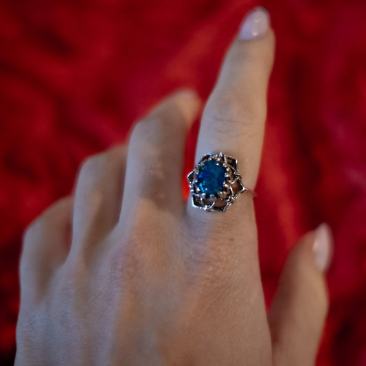 Sterling Silver Doublet Opal Ring - Size UK M / US 6
