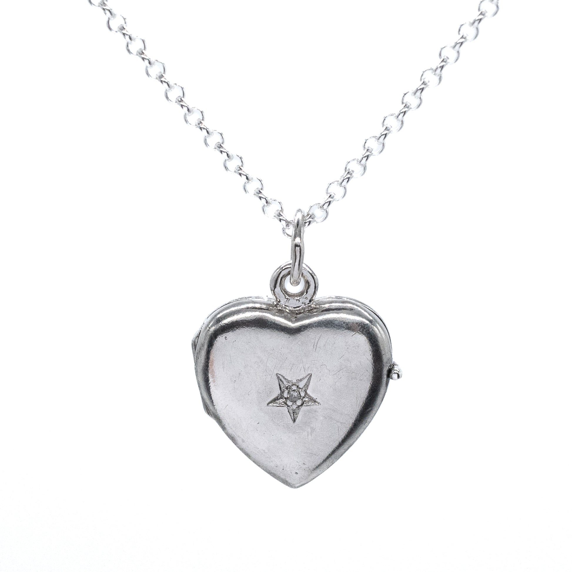 A sweet and timeless sterling silver heart locket set with a tiny diamond at the centre for just the right amount of sparkle. The locket opens to hold a small photo or keepsake, making it both meaningful and beautifully wearable. Hung on a classic silver chain, it’s the perfect everyday sentimental piece — romantic, simple, and effortlessly elegant.