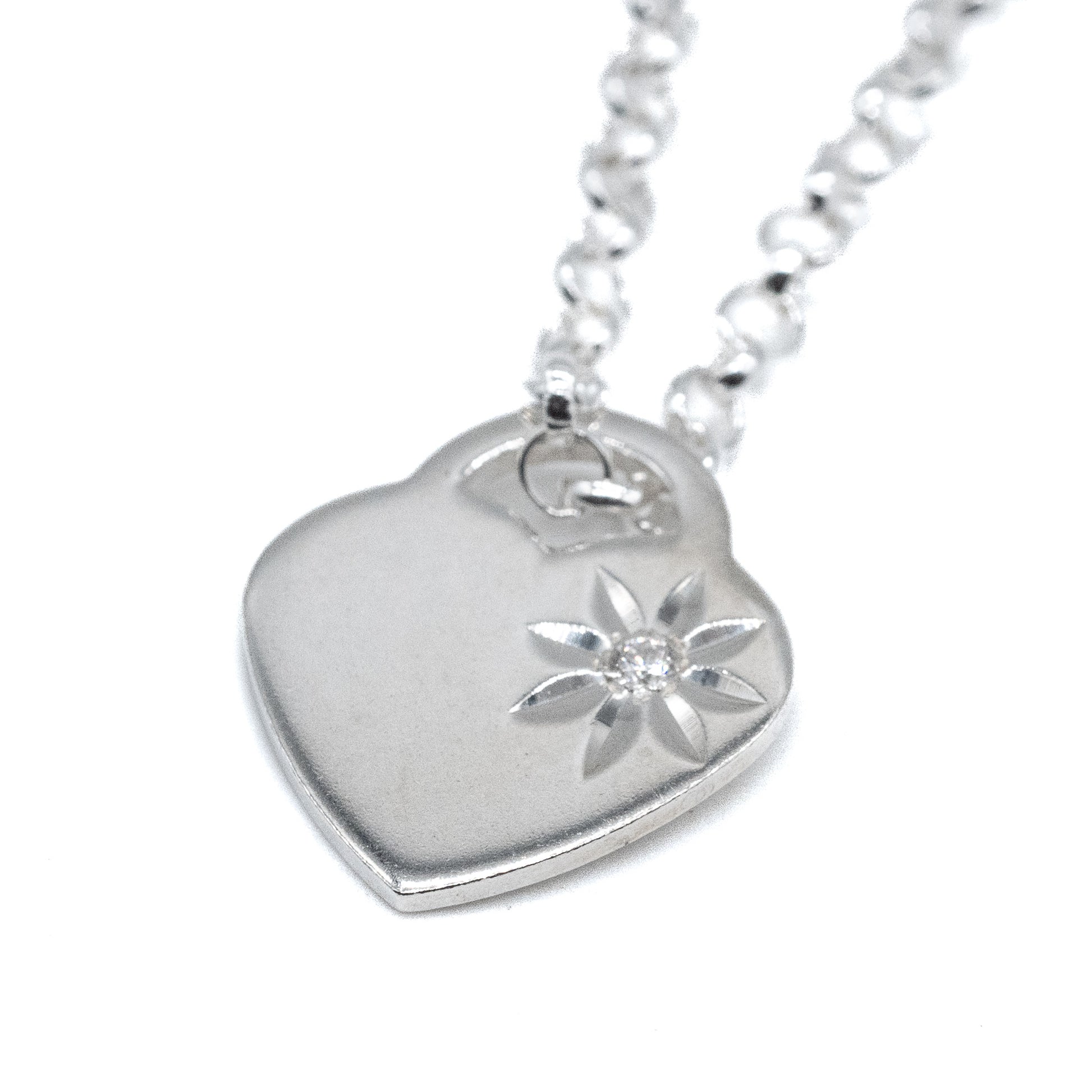 A classic sterling silver heart pendant set with a single round CZ, star-set into the centre for a soft, vintage sparkle. The star setting gives the gemstone a lovely twinkle without being too bold, making this piece feel timeless, sweet, and easy to wear every day. It sits beautifully on a simple silver chain — perfect on its own or layered with your favourites.