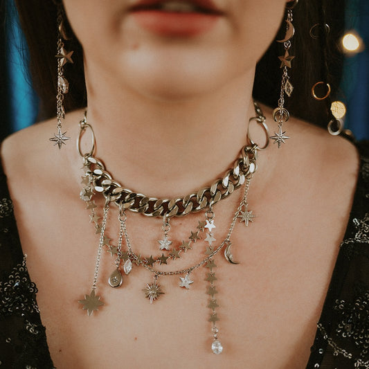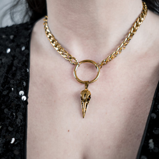 Repent Medieval Black Gemstone Gold Choker Necklace
