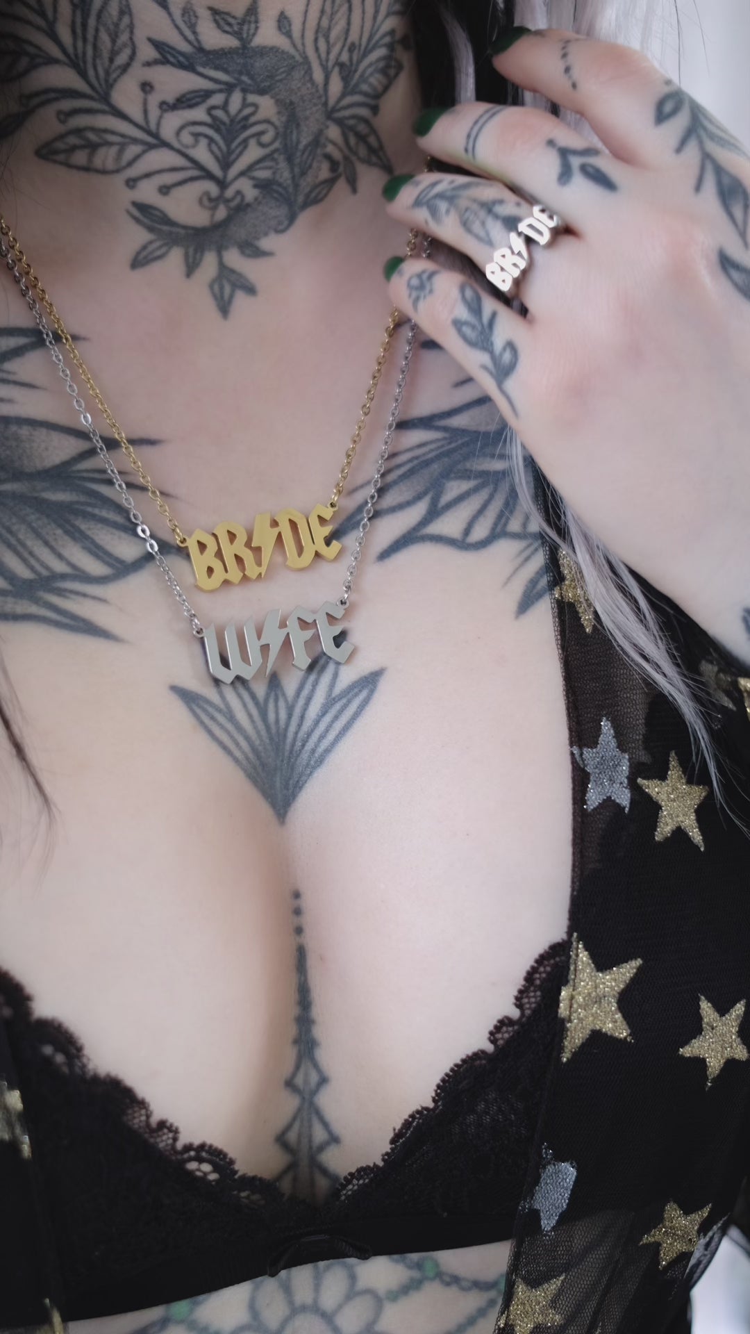 For the bride who wants to add a bit of edge to their happily ever after, our Alternative Wife Ring is the perfect accessory! It's a statement piece that celebrates alternative weddings, gothic weddings, and any bride who wants to express her style and personality. Make your special day a little unexpected—and a lot more you!
