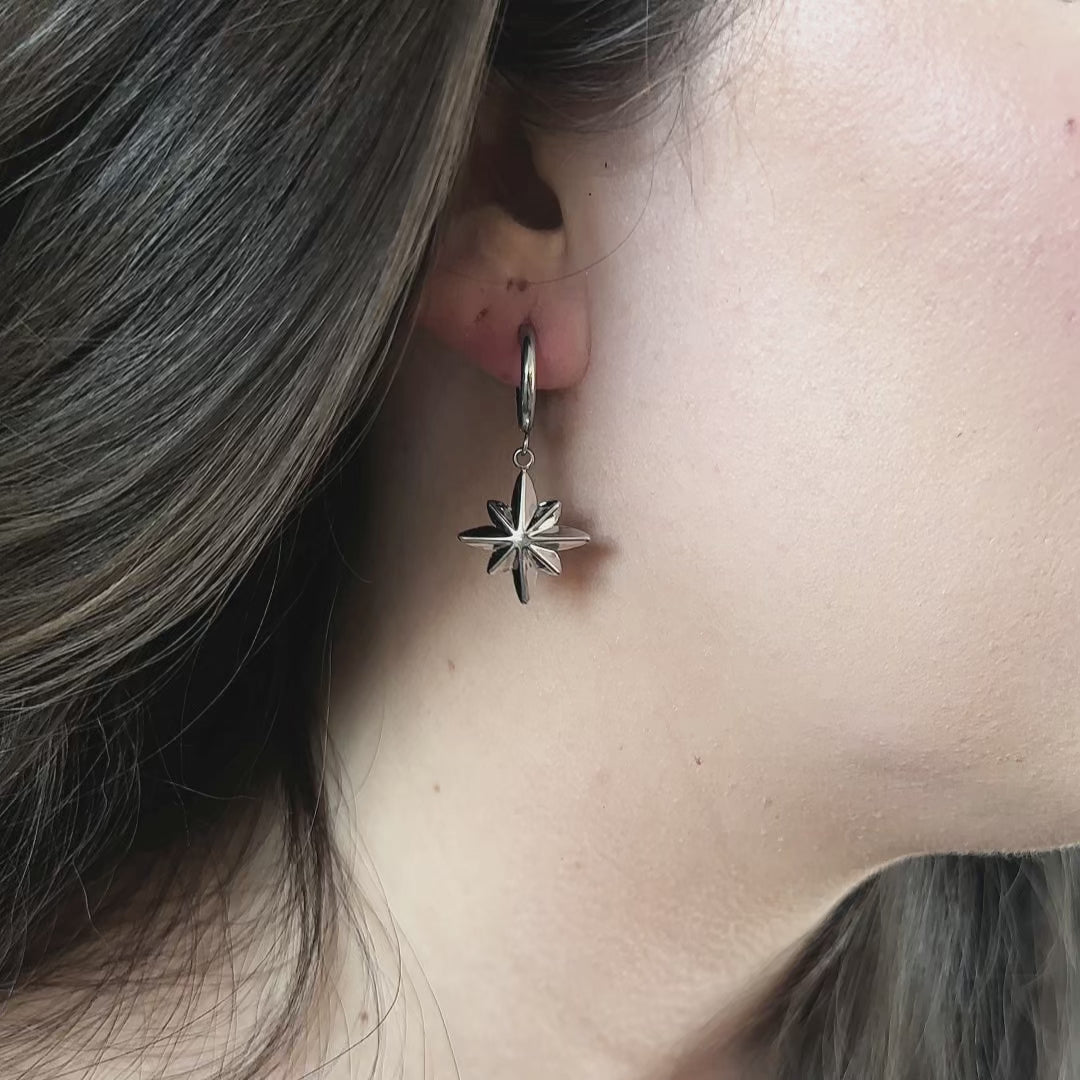 Illuminate your look with the enchanting Celeste North Star Hoop Earrings. Designed to capture the beauty of the night sky, these exquisite hoops feature delicate North Star charms suspended from sleek, polished hoops.