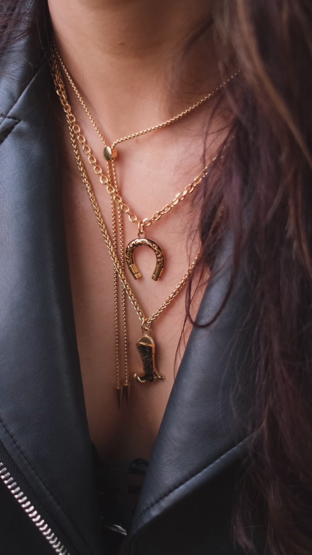 Whether you're roaming the open range or hitting the town for a night of dancing, this gold necklace makes a statement that speaks to your cowboy soul. It's also a thoughtful and distinctive gift choice for fellow admirers of the west and its enduring symbols.