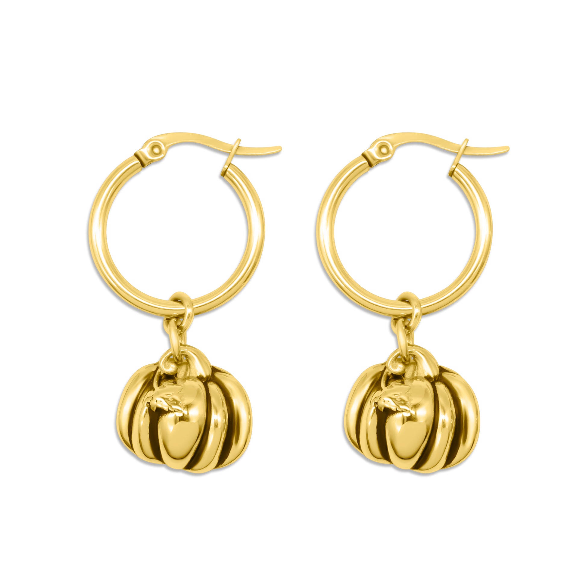 Celebrate the spooky season every day with the Pumpkin Hoop Gold Earrings, designed to bring a touch of eerie elegance to your style. These unique earrings blend festive charm with a sophisticated gold finish, making them perfect for those who want to channel the spirit of Ghosts and Ghouls beyond Halloween.