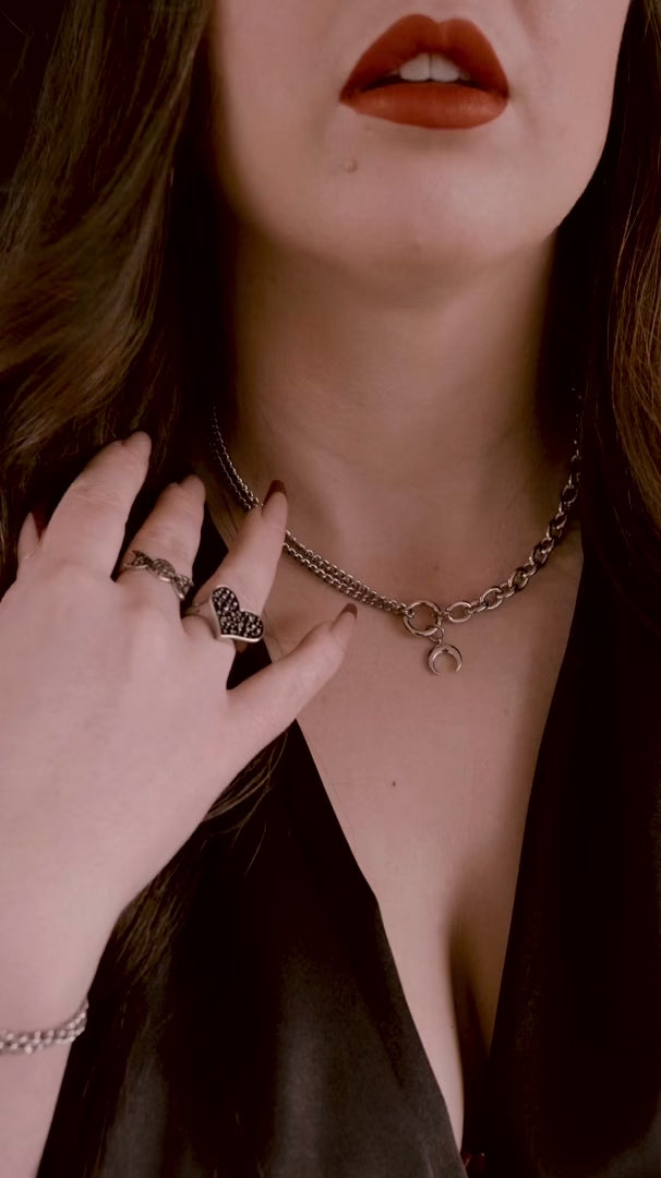 This necklace is beautiful. Has a very good weight to it & I love how adjustable it is. I've personally found that it tends to slip to one side, meaning that the moon doesn't sit in the center. I don't know whether it's because the one chain is slightly heavier than the other or if it's a me issue. Nevertheless, it's a fantastic piece and pairs perfectly with the Selene Bracelet.