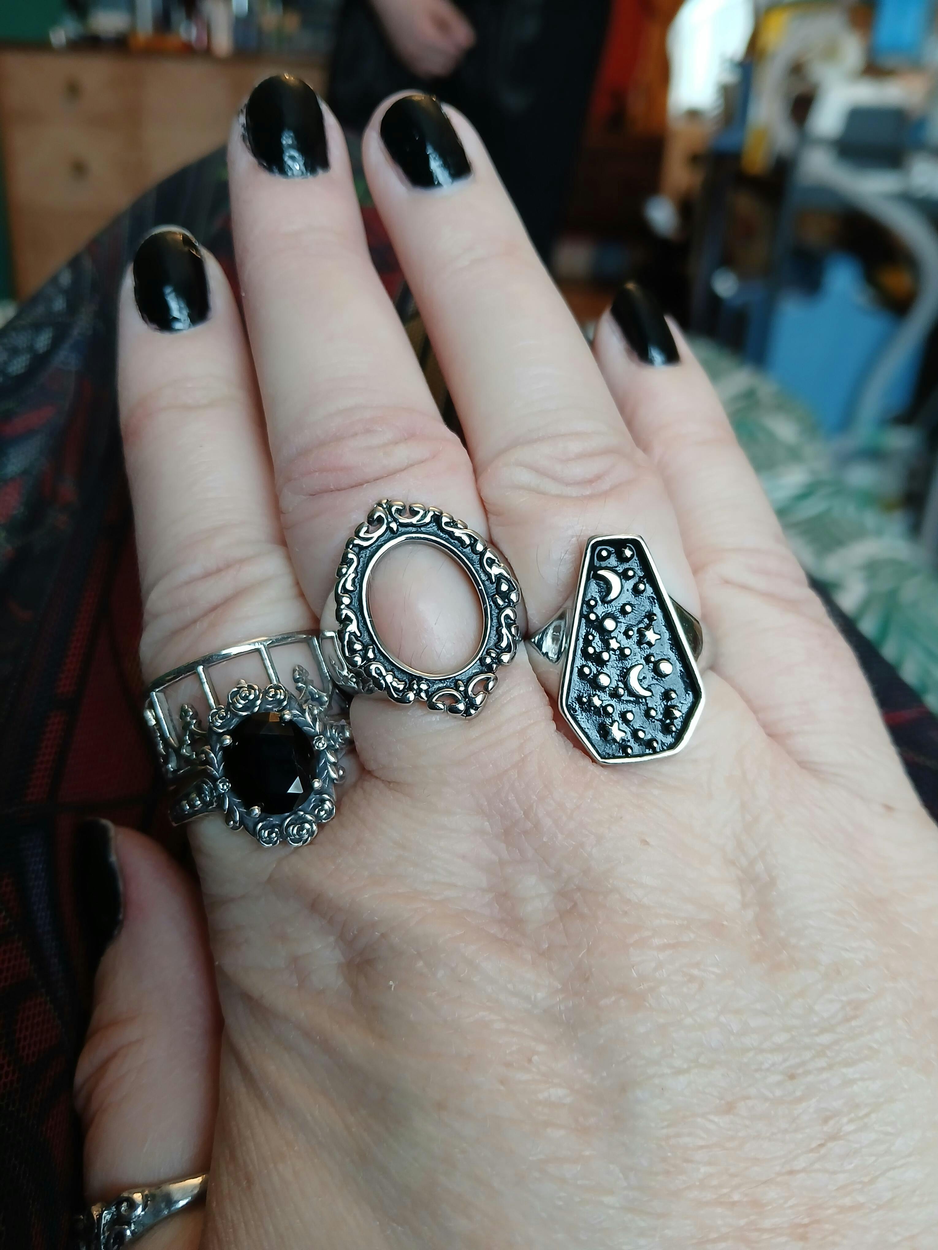 Absolutely love The Obsidian Marrow Black Gemstone Ring and The Tethered Remains Bone Ring. Fit perfectly and look so good with my other rings and so comfortable to wear all day. Beautiful quality and stunning designs