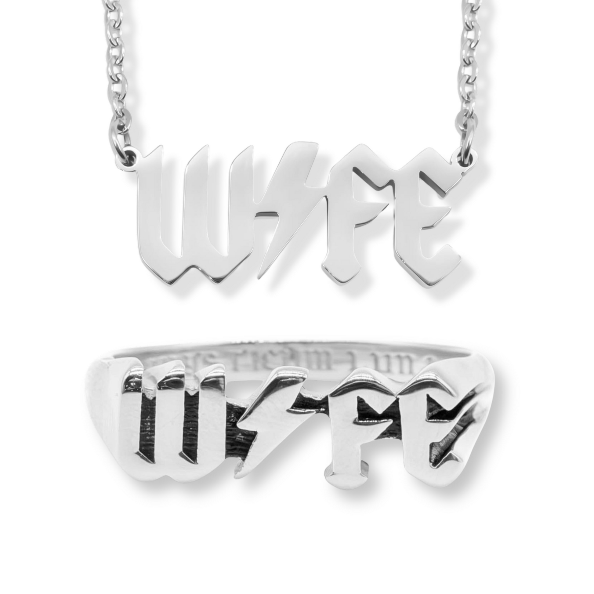 For the souls bound by eternal love and the shadows of the night, the Alternative Wife Jewellery Bundle is a tribute to devotion beyond the grave. Featuring a Wife Ring and Wife Necklace, this set is crafted for those who find beauty in the macabre and romance in the abyss.