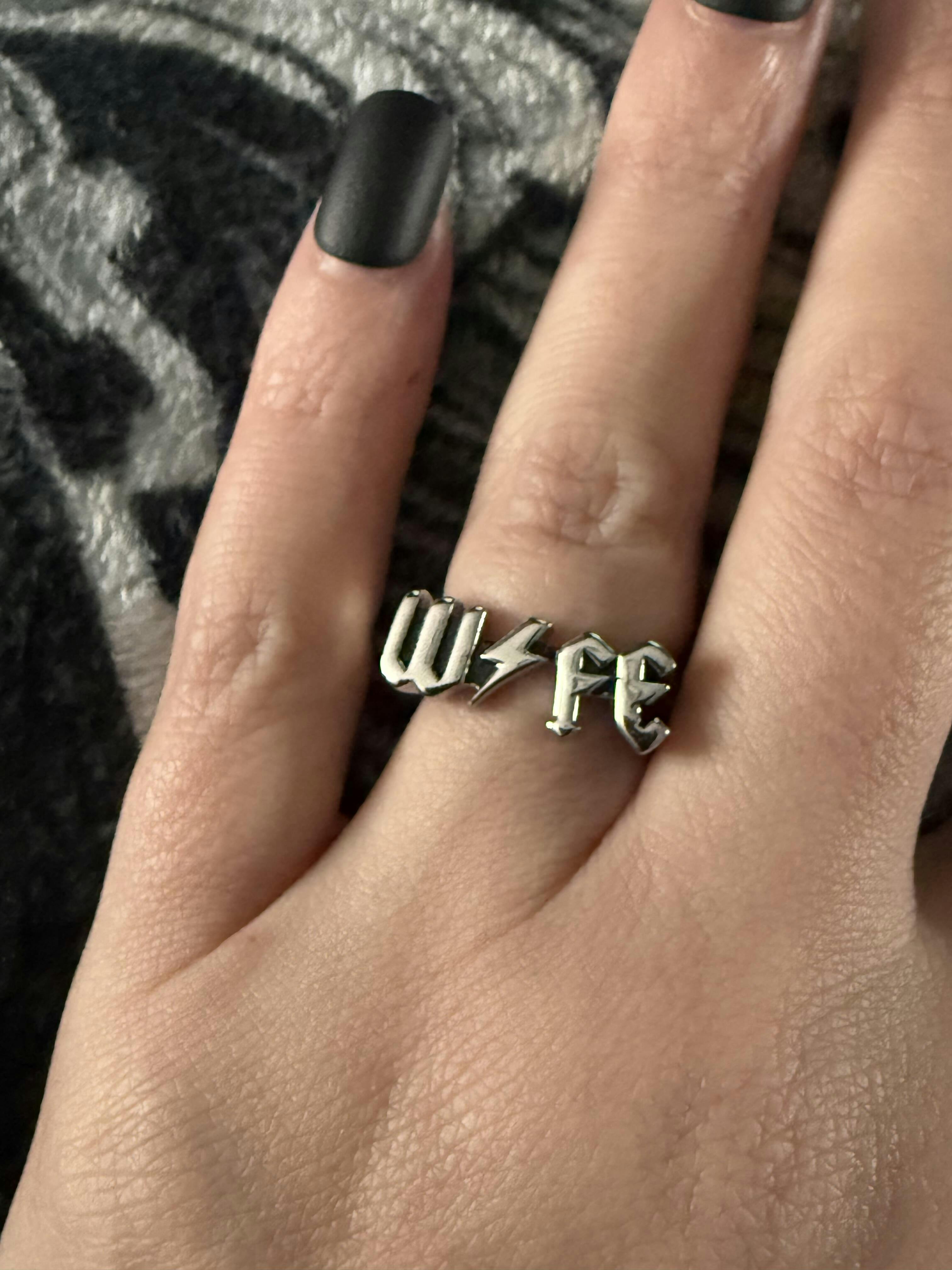 For the bride who wants to add a bit of edge to their happily ever after, our Alternative Wife Ring is the perfect accessory! It's a statement piece that celebrates alternative weddings, gothic weddings, and any bride who wants to express her style and personality. Make your special day a little unexpected—and a lot more you!