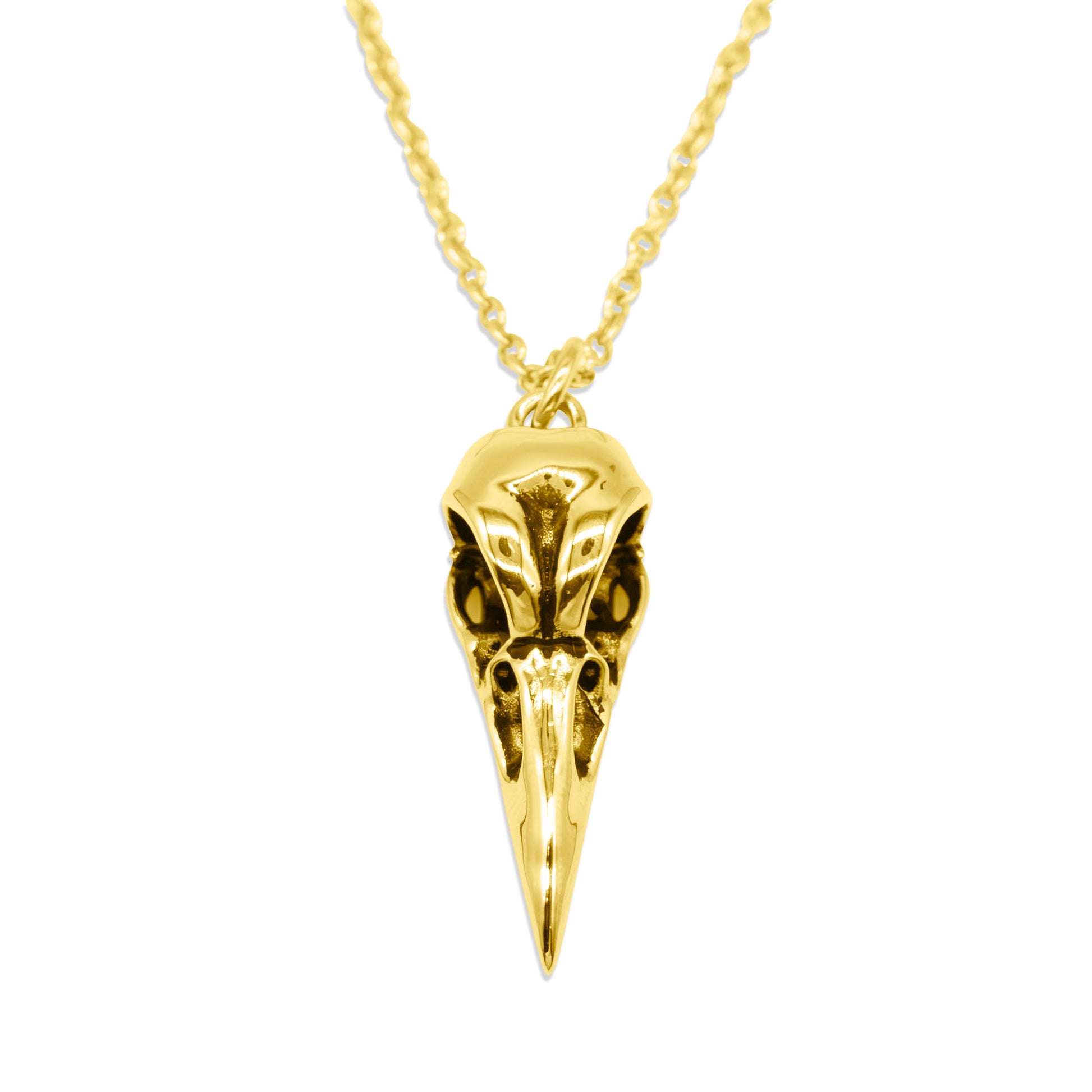 Gold Raven Bird Skull Necklace