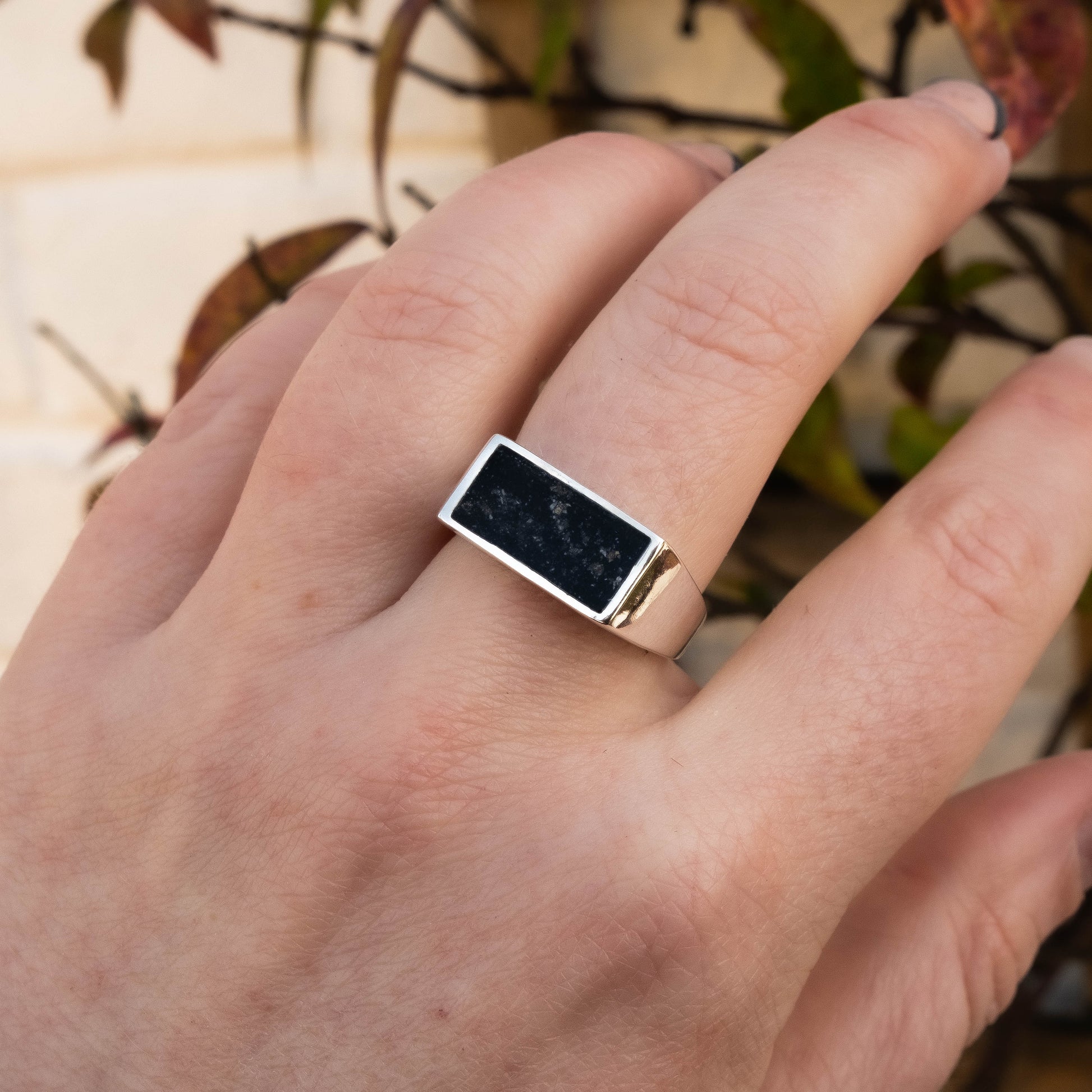 The Signet Keepsake Ring is a meaningful memorial ring designed to preserve the moments and memories that matter most. The signet-style centre is carefully filled with resin containing your chosen inclusions — breastmilk, cremation ashes, hair, umbilical cord, or a combination — allowing you to create a deeply personal keepsake ring that tells your story.