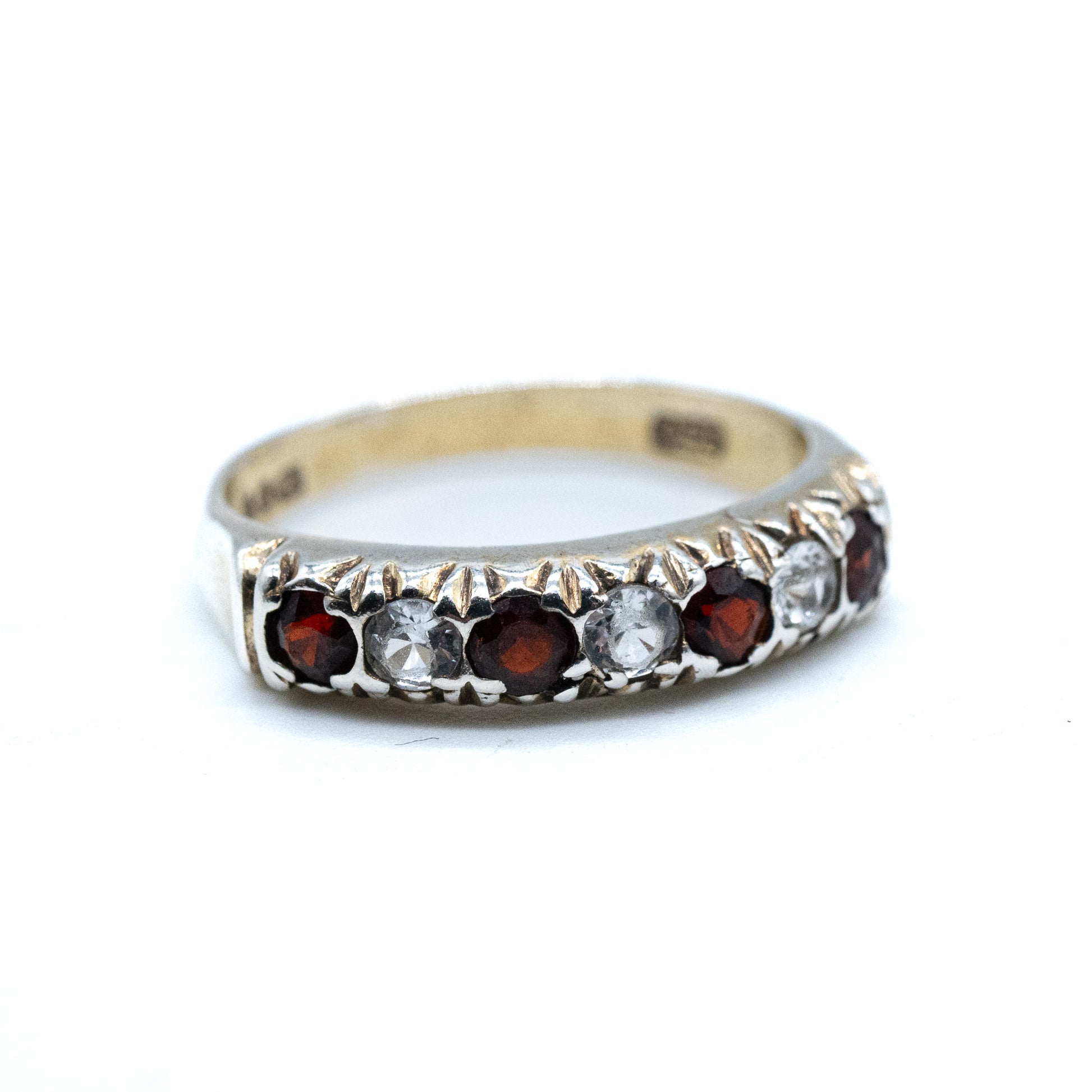 Sterling Silver Diamond and Garnet Half Eternity Ring - Size UK P / US 7.5
